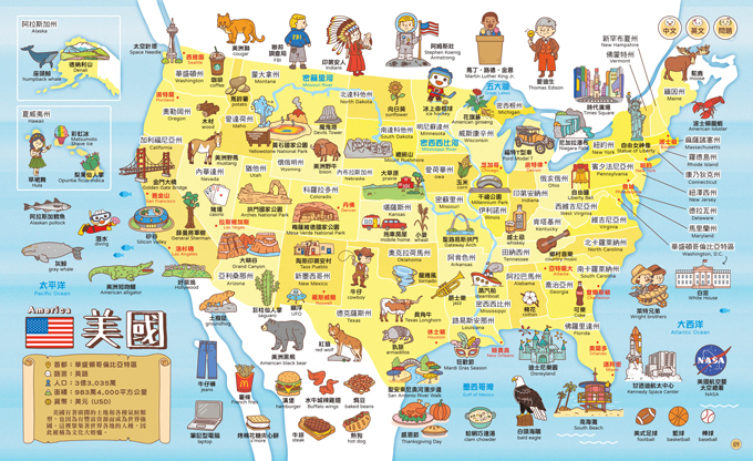 收錄世界200國的國旗及國家資料,並深入介紹35個國家的特色,培養孩子的國際觀。