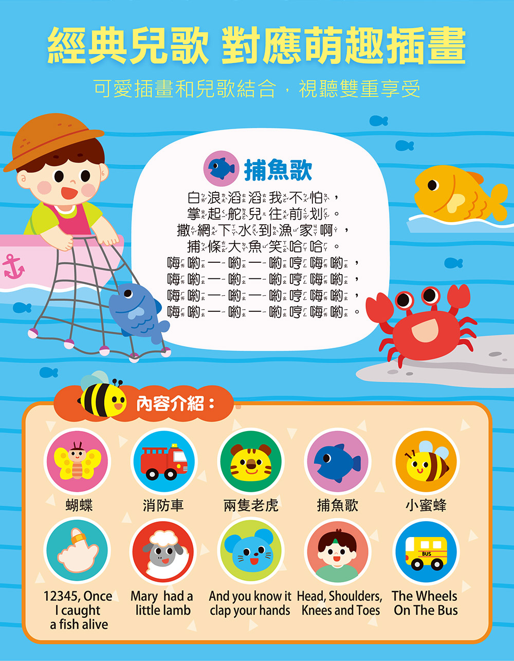 搭配豐富插畫,跟著歌詞一起歡唱。