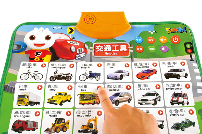 《FOOD超人觸控學習掛圖-交通有聲掛圖》幫助孩子學習46種交通工具,同時可學習英文單字,且搭配交通工具的聲音,只要手指輕輕一按即能發聲,加上多種功能鍵切換學習模式,也有問題遊戲幫助小朋友加深印象。掛圖中含有2首律動兒歌,陪伴孩子快樂成長,一起唱唱跳跳。