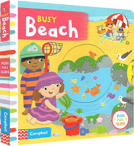 With lots to see in Busy Beach, children can have fun as they take a trip to the seaside, pulling and turning the tabs! Enjoy playing with a beach ball, building a towering sandcastle and buying a tasty ice-cream cone!