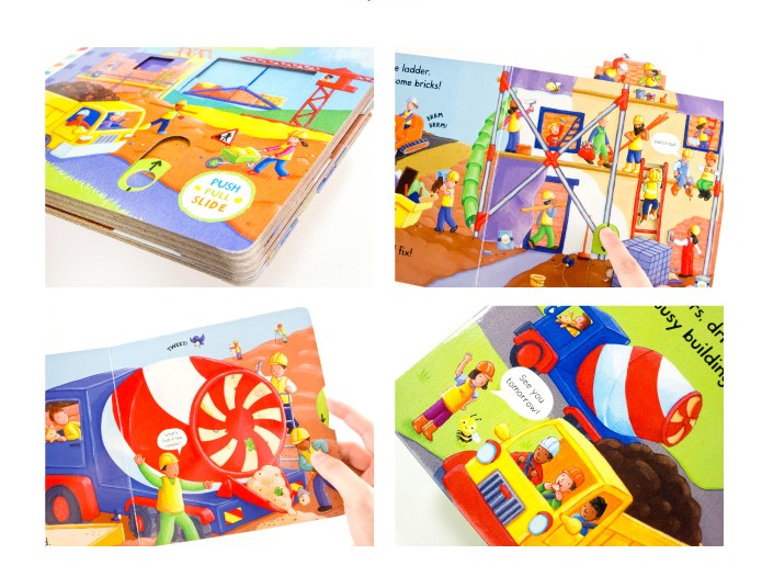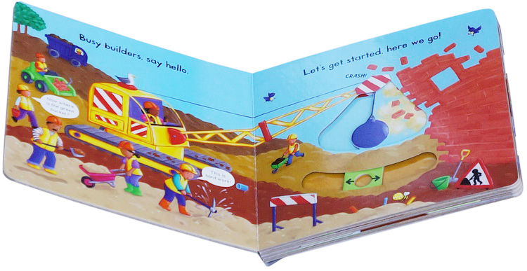 With lots to see and heaps to do, in Busy Builders young children really can join in by pushing, pulling and turning the tabs to bring the building site to life. Climb a ladder, make a crane lift heavy loads high up into the sky, then knock down a building with a giant wrecking ball.
