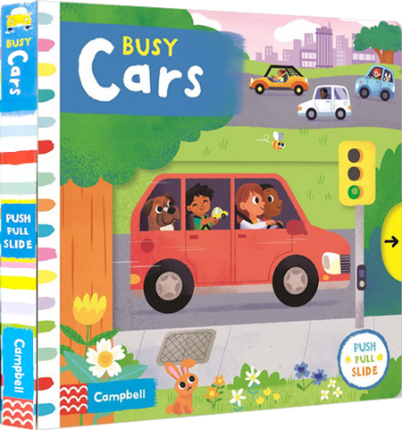 Push, pull and slide the tabs to zoom about town in Busy Cars! Lower the convertible's roof, swish the windscreen wipers and charge the car at the end of the day in this book about fun, fast, four-wheeled vehicles.