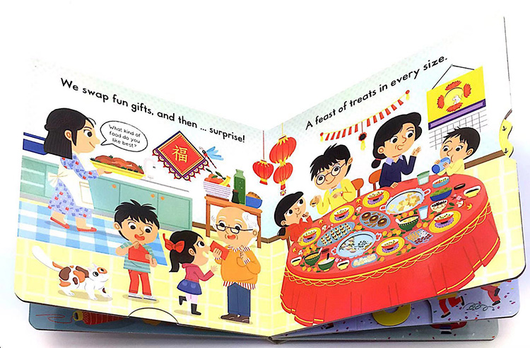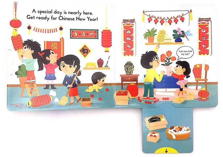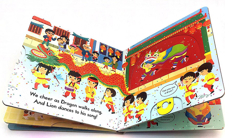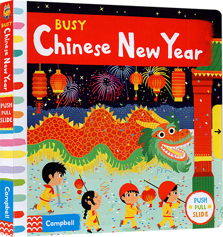 Little ones can push, pull and slide the tabs to join in the celebrations in Busy Chinese New Year! Make the Lion and Dragon dance, enjoy a family banquet and watch the spectacular fireworks.