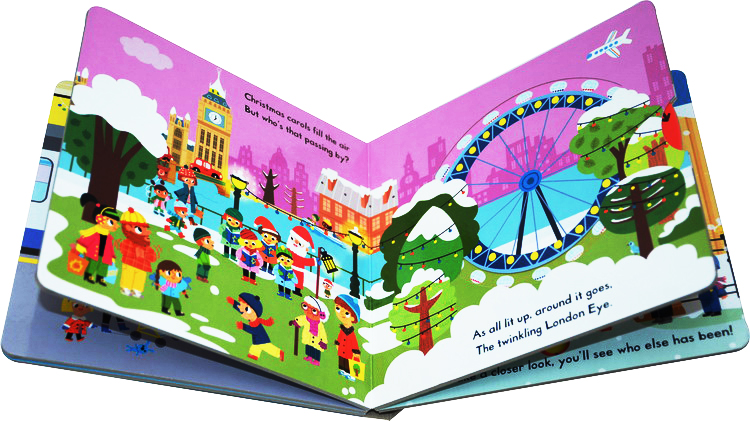 It's Christmas in London! Push, pull and slide the London scenes to explore the sights of the busy city. Turn the London Eye or open Tower Bridge while Santa makes his way through the snowy city. Look out for him amongst the Christmas shoppers, carol singers and even a snowman. There's even a very special visitor to Buckingham Palace!Busy London! Busy London at Christmas is a big, bright board book with easy-to-use mechanisms that are designed for toddlers. The colourful illustrations are packed with detail and things to spot, making it the perfect introduction to Christmas in London.From Marion Billet, the illustrator of the popular Whizzy Wheels series.