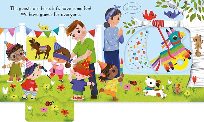 Push, pull and slide the tabs to celebrate the 50th book in the popular Busy Books series with Busy Party! Decorate the house with balloons and bunting, play party games and dance the night away while fireworks fizz and pop!