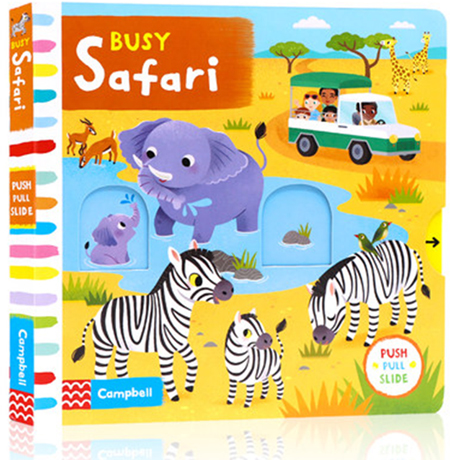 Push, pull and slide the scenes to discover all the different animals in Busy Safari! Help the elephants cool down, make a cheetah run really fast and find out who is hiding in the mud in this fun book about amazing African animals.Children will love playing with this bright and colourful board book! Featuring gentle rhyming text and wonderful illustrations by Yi-Hsuan Wu, Busy Safari is part of Campbell Books bestselling Busy Books series.Discover more amazing animal adventures with Busy Farm, Busy Zoo, Busy Pets, Busy Vet and Busy Jungle.