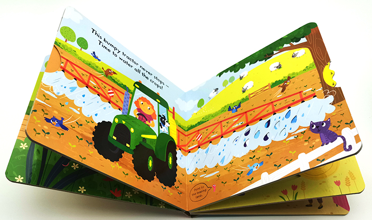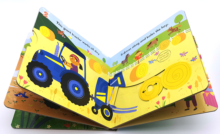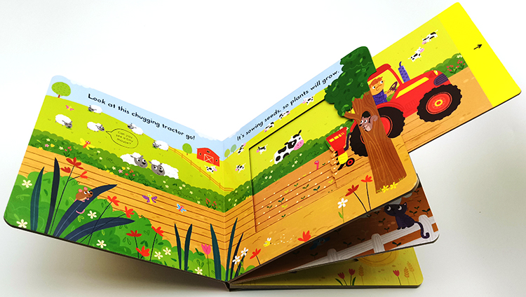 With lots to see in Busy Tractor, children can help out on the farm, pulling and turning the tabs. See the big tyres turn, drive the tractor through fields and harvest a crop of tasty vegetables!