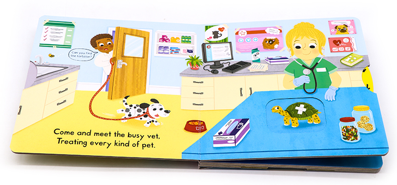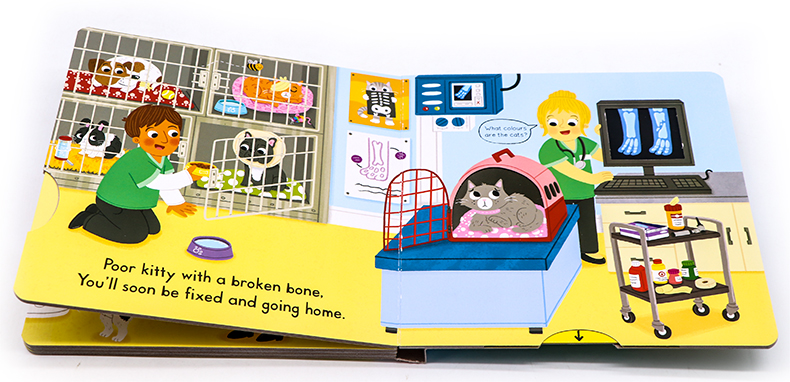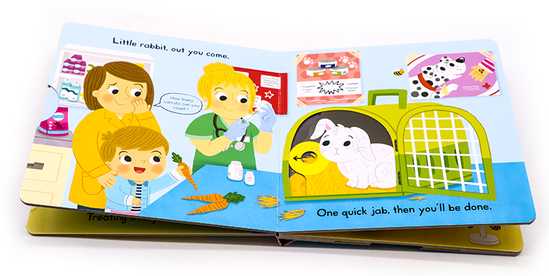 With lots to see, in Busy Vet young children can join in by pushing, pulling and turning the tabs to experience a trip to the vet. Join the vet as she checks each animal, watch as the poorly bunny has an injection and see who has had too many treats!