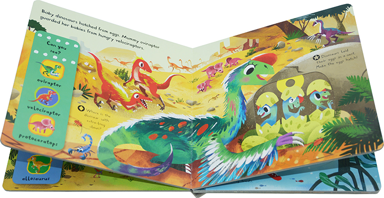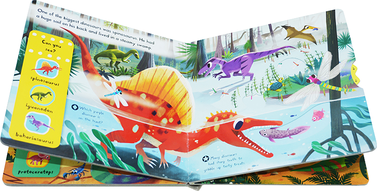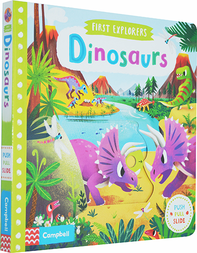 Each scene has chunky push, pull and slide mechanisms, animals to spot and fun facts about dinosaurs. Beautifully illustrated by Chorkung, this title has gentle learning and is a magical introduction to dinosaurs.