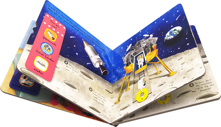 Each scene has chunky push, pull and slide mechanisms perfect for little hands with fun facts about the Moon Landing. Beautifully illustrated by Lon Lee, this title provides gentle early learning and is a simple introduction to science topics for small children.