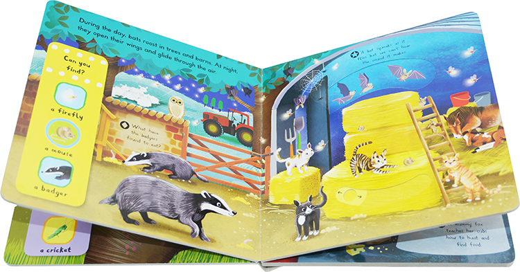 Each scene has chunky push, pull and slide mechanisms, animals to spot and fun facts about night creatures. Beautifully illustrated by Jenny Wren, this title has gentle learning and is a magical introduction to the natural world.