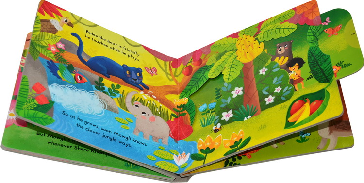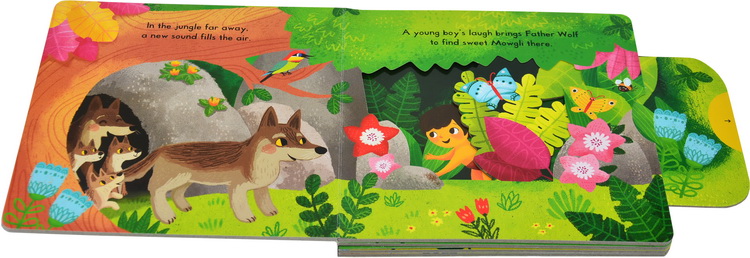 Push, pull and slide mechanisms to bring the story to life and see favourite scenes in action. Mowgli, Baloo, Bagheera and of course the fearsome tiger Shere Khan are all beautifully imagined by Miriam Bos in her bold, appealing illustrations.