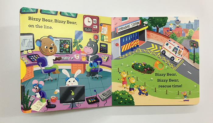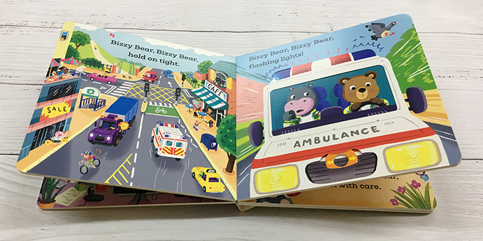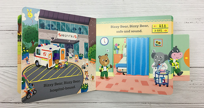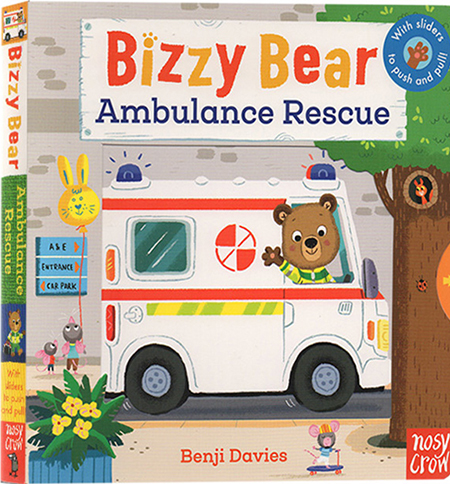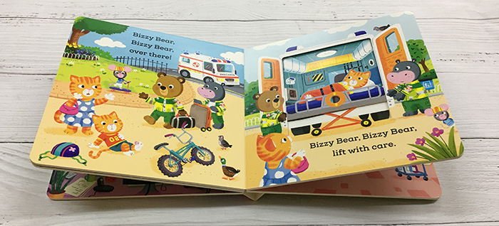 Today, Bizzy Bear is working as a paramedic and when the emergency call comes in, there isn’t a moment to lose! Help him speed along in the ambulance and switch on the flashing lights. Then, once he’s rescued the injured cyclist, lift the stretcher and pull back the ward curtain for the doctor. A funny little story with loads of details to spot and chat about.