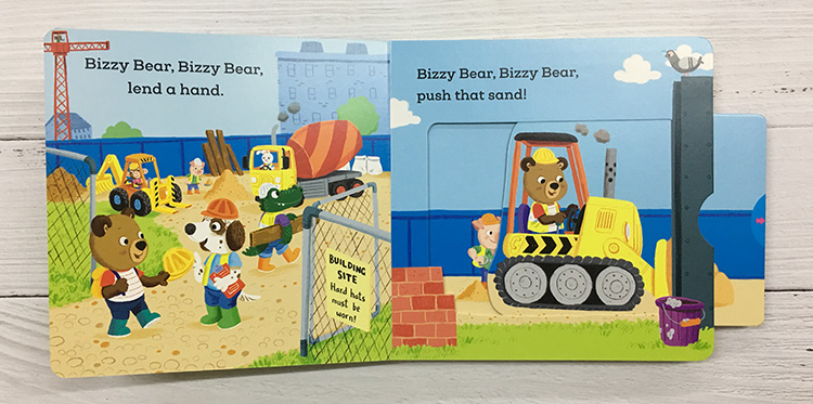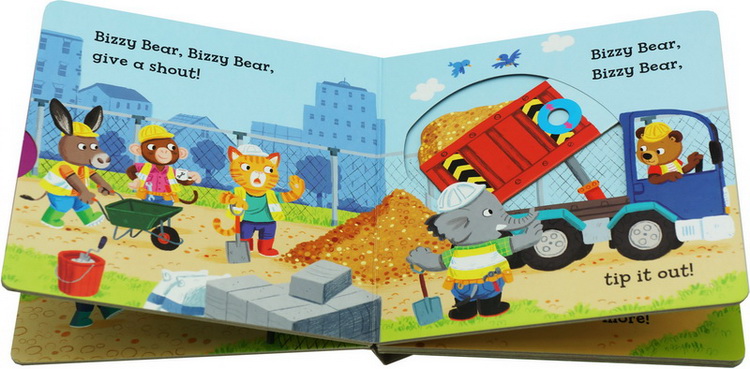 Bizzy Bear is hard at work on the building site! Today Bizzy Bear's helping out at the building site so he puts on his hard hat and gets to work. Help him drive a digger, a bulldozer and a lorry! A chunky little book with sliders and tabs to push and pull. "This is toddler publishing at its best." - Waterstones