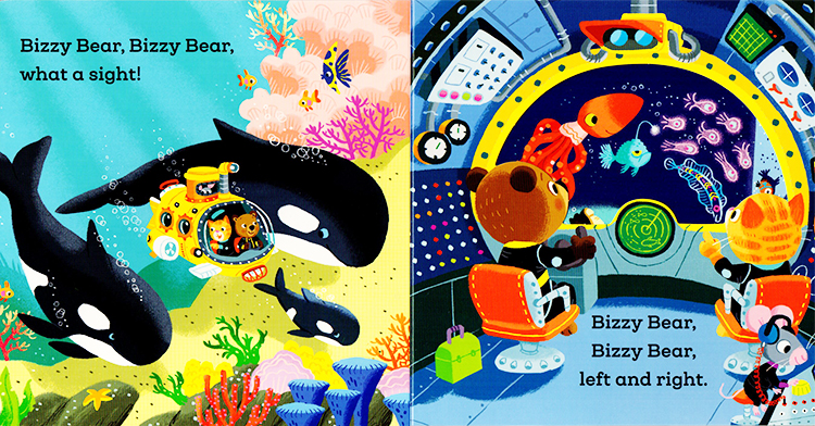 Today, Bizzy Bear is off in his yellow submarine for an exciting underwater adventure! Little readers will love helping him descend into the ocean, avoid the scary octopus on the sunken ship and, finally, discover the hidden treasure! A funny little story with loads of details to spot and chat about.