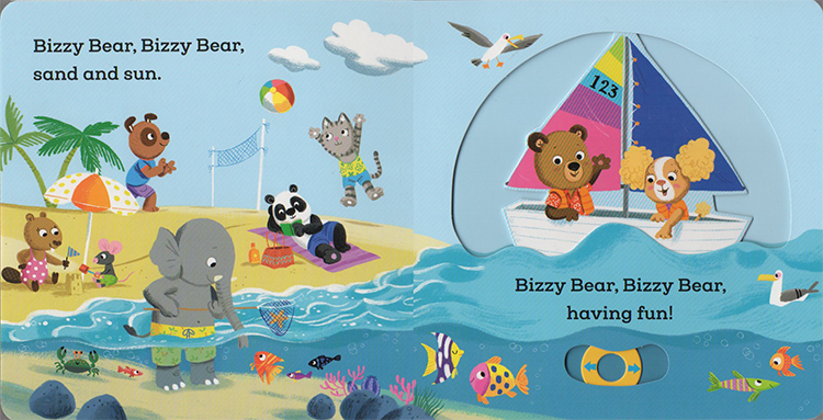 Bizzy Bear’s going on holiday, but he has to take a taxi, then a train, then a plane before he arrives at the beach and can set sail on his boat – lots of fun for vehicle-mad toddlers! A funny little story with loads of details to spot and chat about.